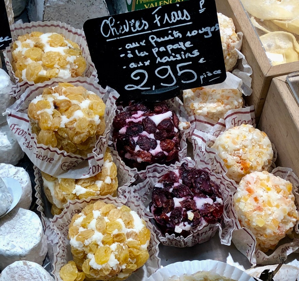 These cheeses above are prettied up with raisins, red rouge bits (I am guessing cranberries?) and papaya bits.