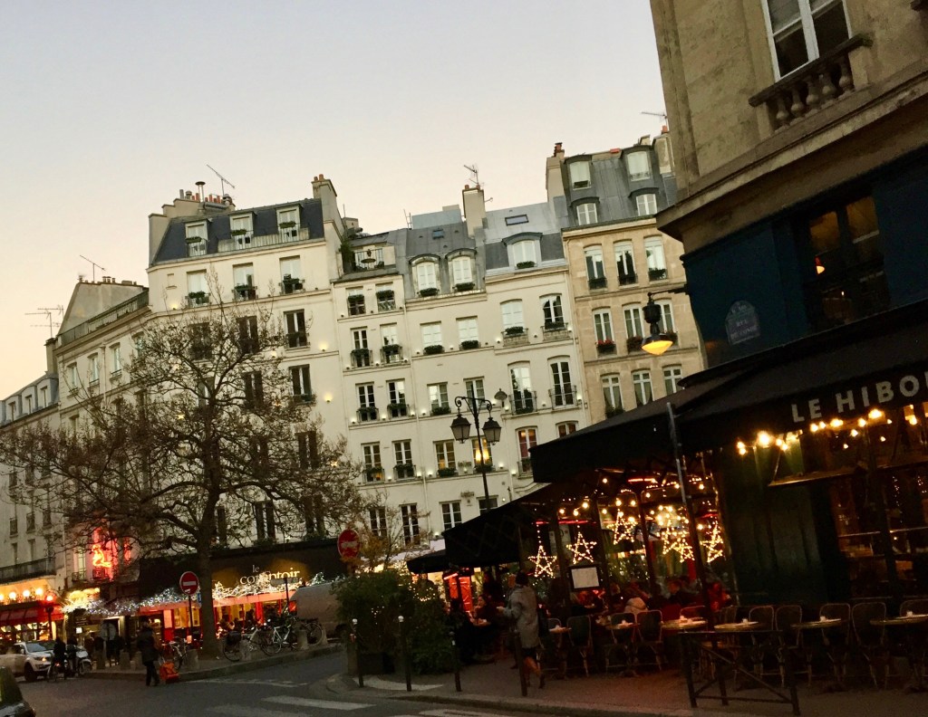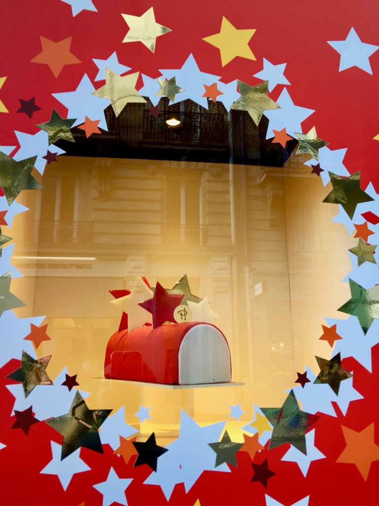 I thought it interesting that STARS were used as the theme on Pierre Herme’s Buche de Noels. The photo just above is a part of my 6th arrondissement neighborhood. More STARS showing off in the evening.