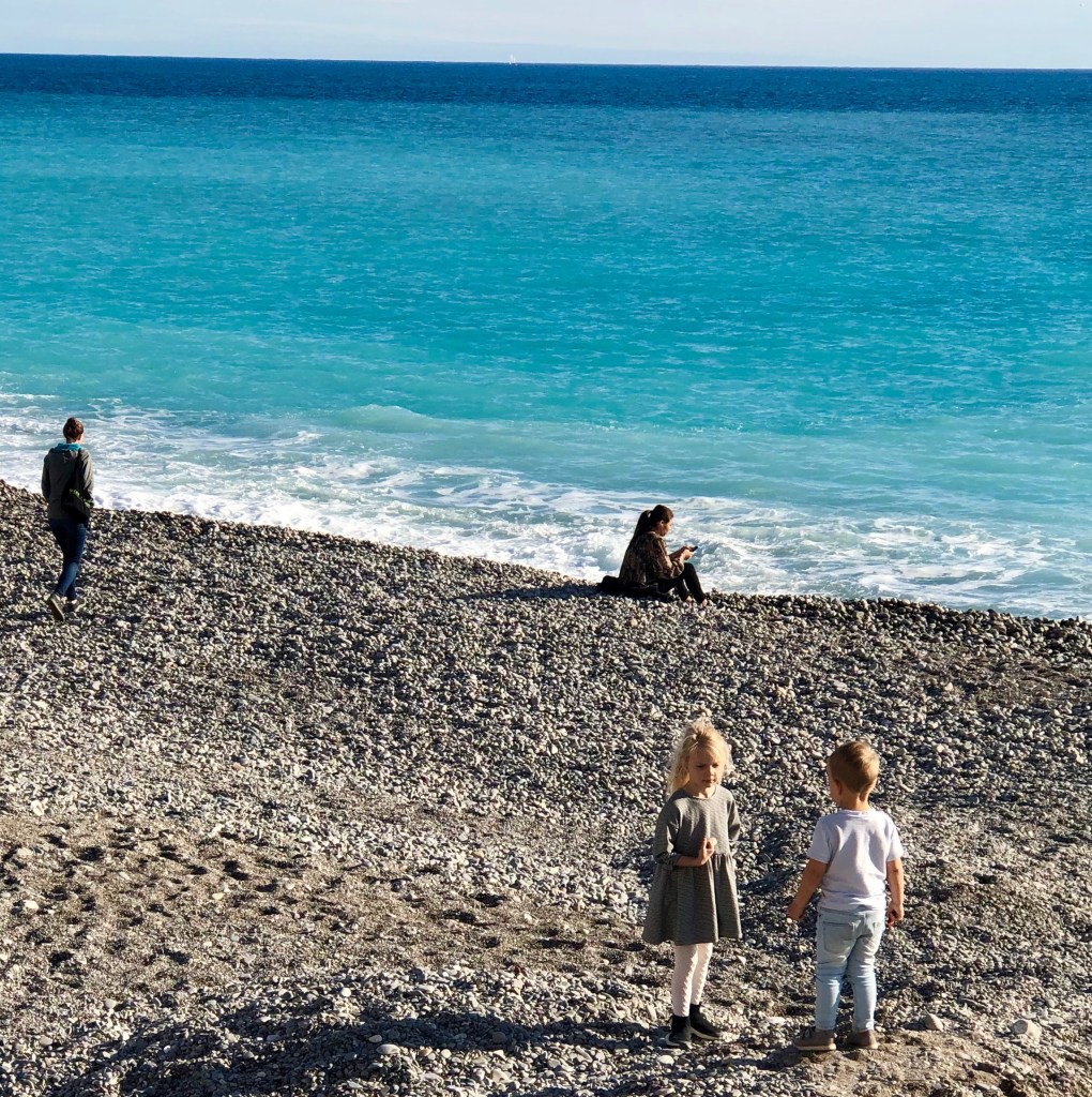 Nice’s beach is pebbly but it doesn’t seem to stop these children walking around in their little shoes. Children bring me JOY.