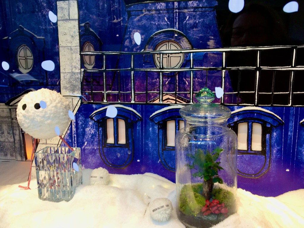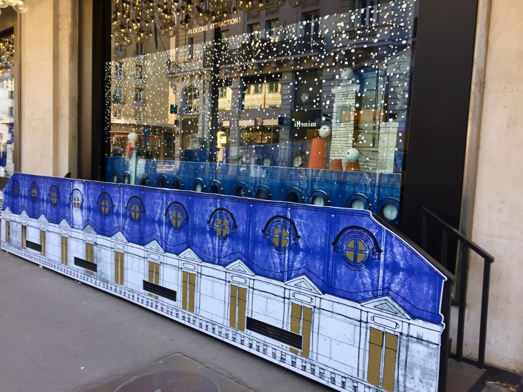 I must admit, even as an adult, approaching Le Bon Marche department store’s Holiday windows sets me up with an anticipation of excitement. Such clever, playful, colorful, smart designs put a smile on my face every year. They haven’t disappointed me yet as they march me back to my childhood and this magical time of the year. This time (2016)…all about the rooftops…animated snowball like character, for instance…