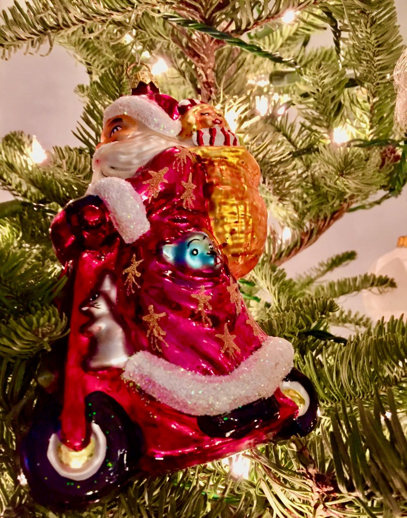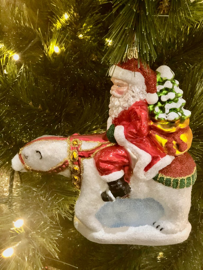 It seems that Santa has changed his mode of transportation for instance, too. Don’t quote me on this but I only found a few ornaments depicting reindeer but they were not with Santa.