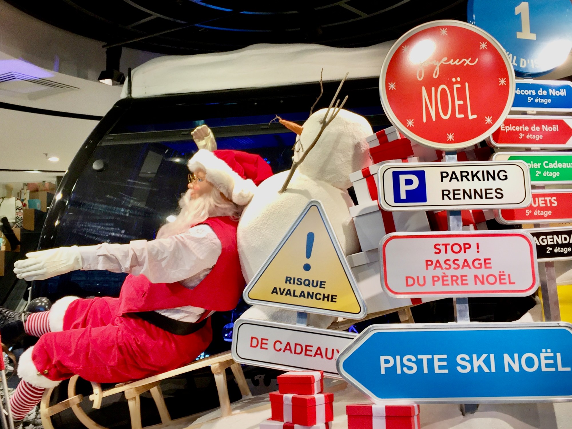 That is a quote from a discussion about one of the differences between celebrating Christmas in the USA and France. However, the Santa/Pere Noel in the featured image is a photo from a window of the BHV store in Paris a few years ago. And, in that photo, he is donning a hat and not a cloak. So, what can I say, but ‘the times, they are a changin’….https://www.youtube.com/watch?v=90WD_ats6eE (Bob Dylan)