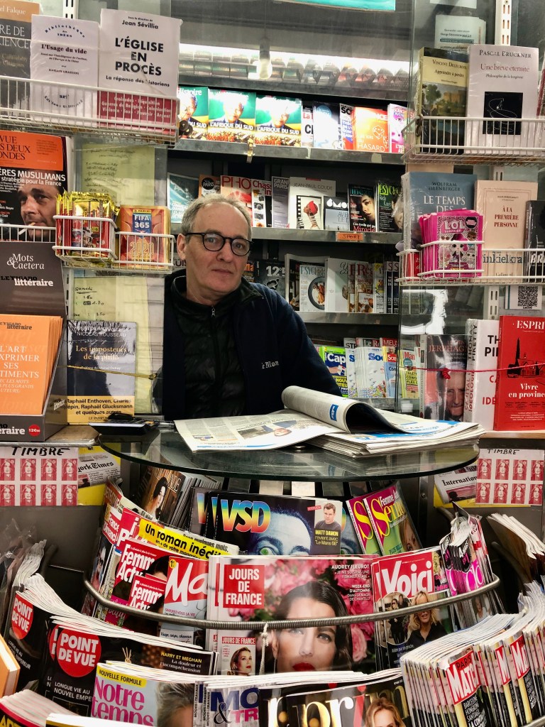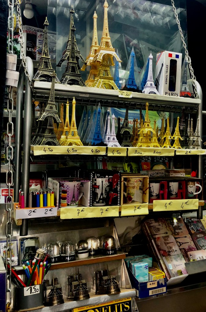 Just to razz my sister, who started to hint at me sending her more, I took photos one day of the racks of postcards and then ‘sent the postcards’ to her that that way instead! She did have a word or two she called me! Sometimes other items come in handy: Drinks, Paris mementos, an American candy bar, comic books, magazines (The ‘COTE’ ones are probably my favorite), the news, and a tote bag to carry it all!