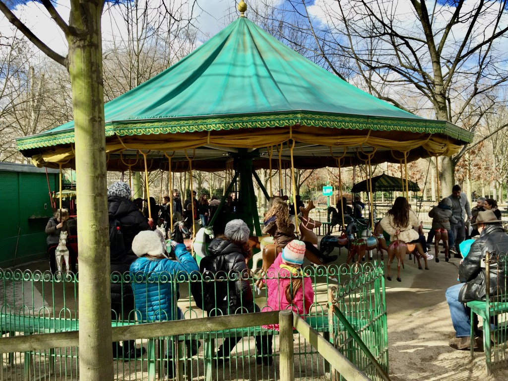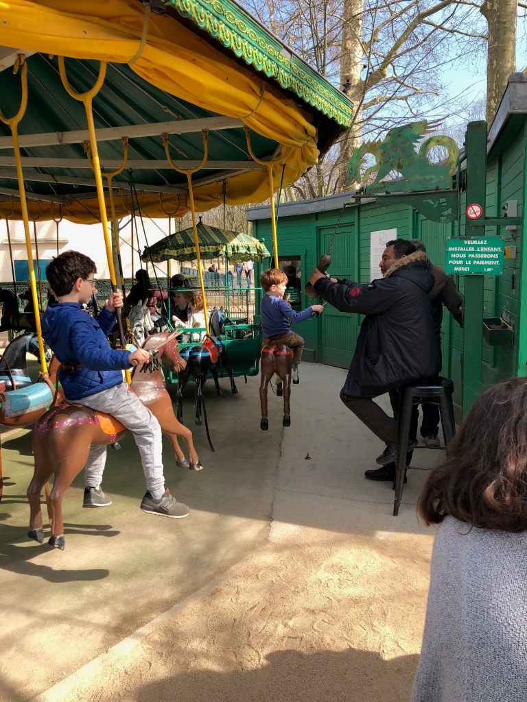 Can you see the boy on the oldest carousel in Paris (located very near the fenced playground) holding on to a stick? He is readying himself to capture a ring. Read the article on the history behind the carousel and ring tilting: https://parisfordreamers.com/2019/03/11/the-marvellous-tale-of-the-merry-go-round/