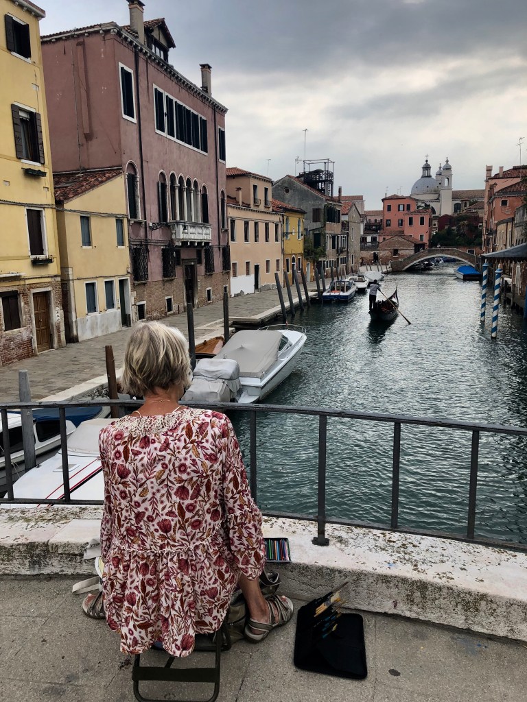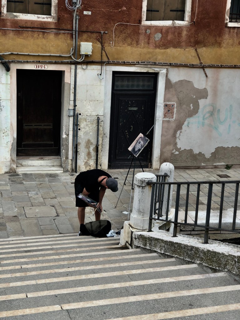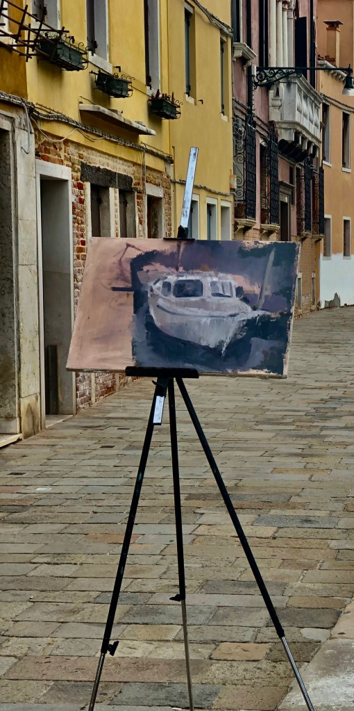 Heading out through the courtyard and into the artsy Dorsoduro neighborhood…limited steps were taken and Whammo! A couple of painters already settled in…