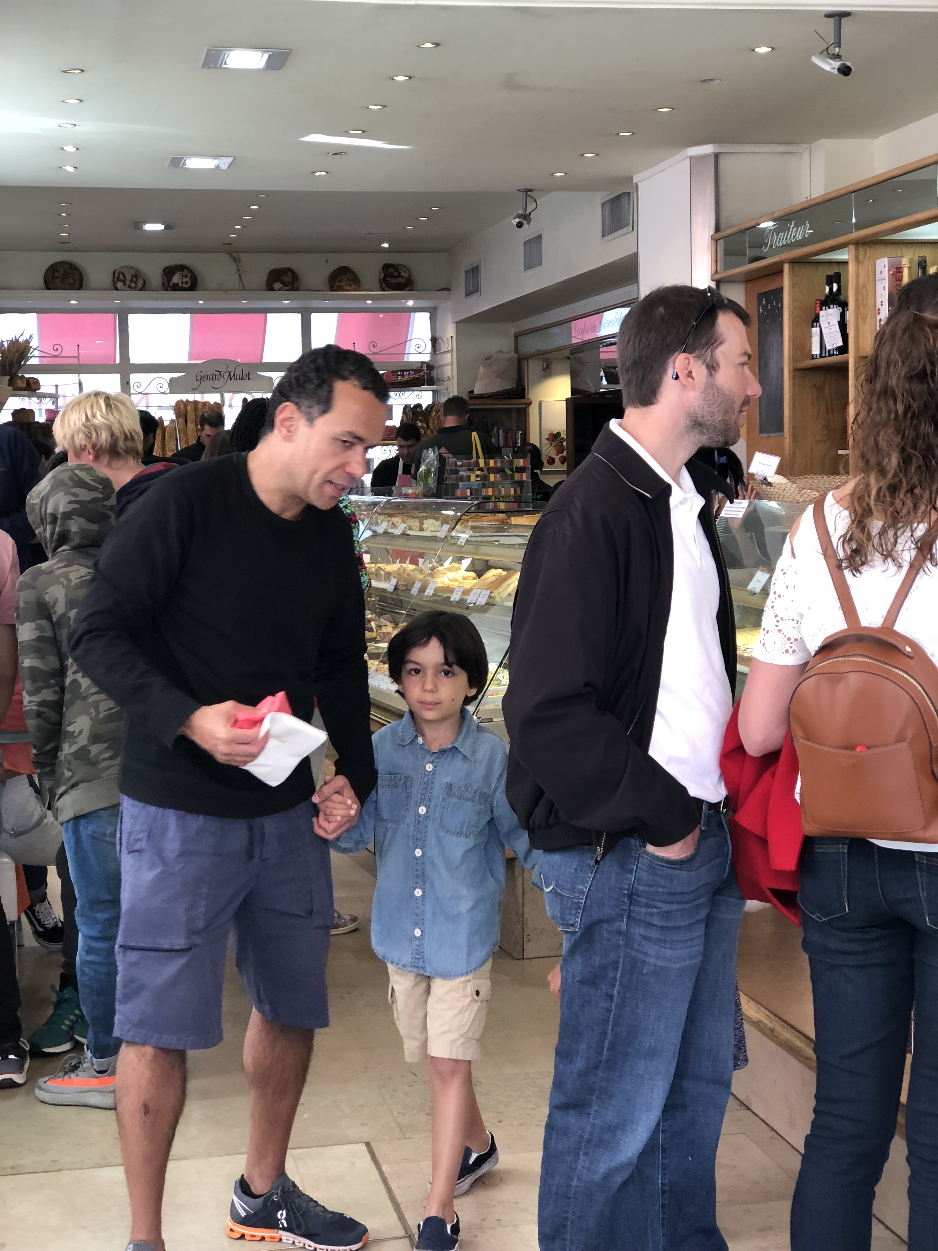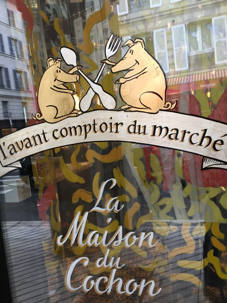 Then there’s the place with the pigs on the door and windows: L’avant Comptoir du Marche’s logo (https://camdeborde.com/en/) lets you know what it is about…yes, pork…a wine bar ala small plates, often of pork origin. This 3rd location is much like Chef Camdeborde’s other two tapas bars which you will find next door to his ever popular restaurant, Comptoir (officially called Le Comptoir du Relais) near the metro Odeon. What’s nice about all three tapas places is that they open for lunch and continue to stay open nonstop, allowing someone like me that finds myself eating at odd hours, keeping them as possibilities to pull out of my brain’s computer files when needed.