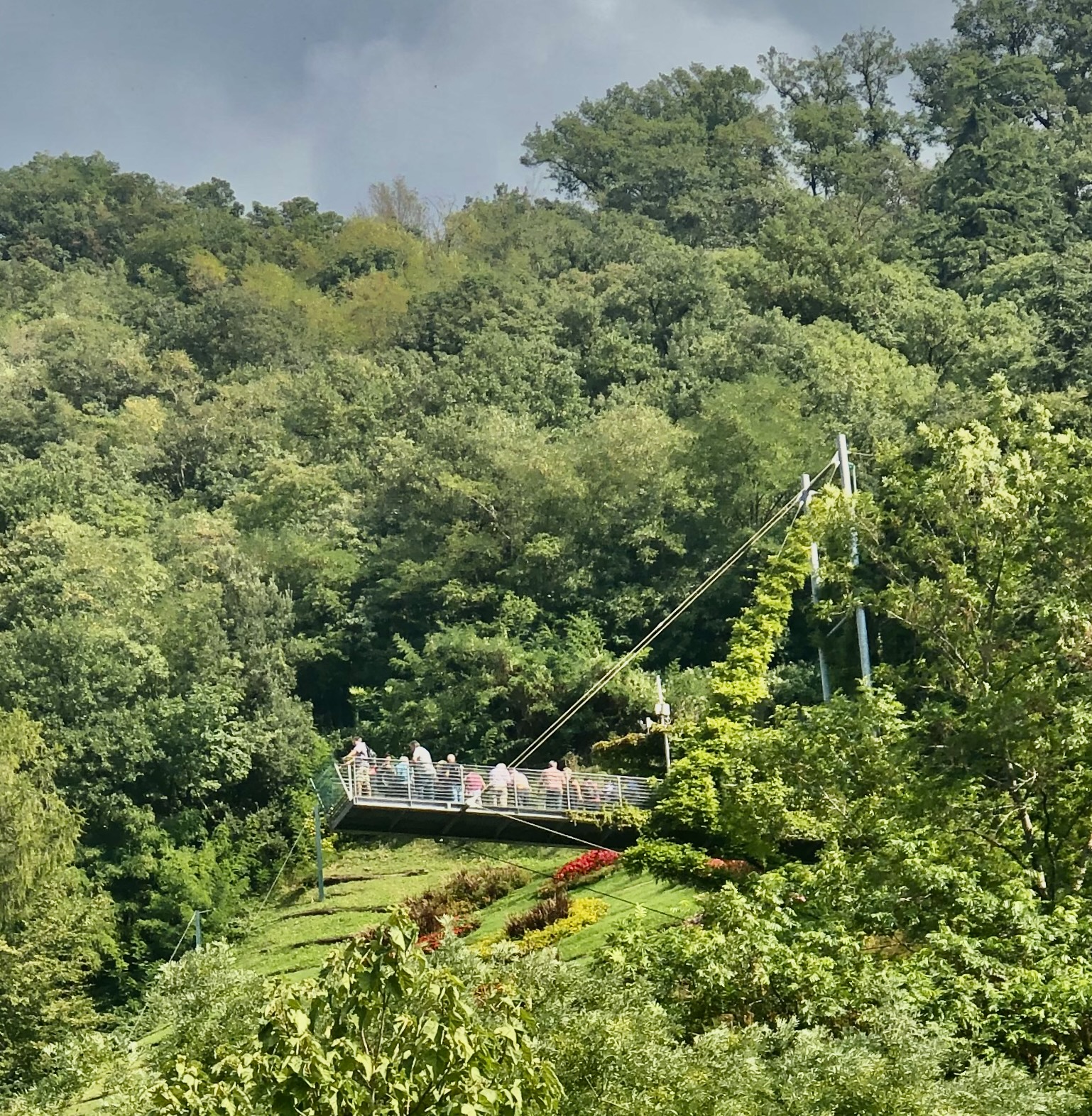 We had only allotted a couple of hours and, admittedly, at the time, I felt we did make a dent, yet, once I looked at their website, I realized there were a multitude of activities and views we certainly missed such as seeing the permanent exhibition in the castle, honing in on the experience stations, the grotto (there was a grotto?? Yikes! How did we miss that??), the lookout points, and aviary, just to name a few. This is also the kind of garden you could visit and spend an afternoon simply sitting on the platform off the pond, reading a book, and people-watching with a stop in at the nearby cafe for a drink. Aww–contentment….