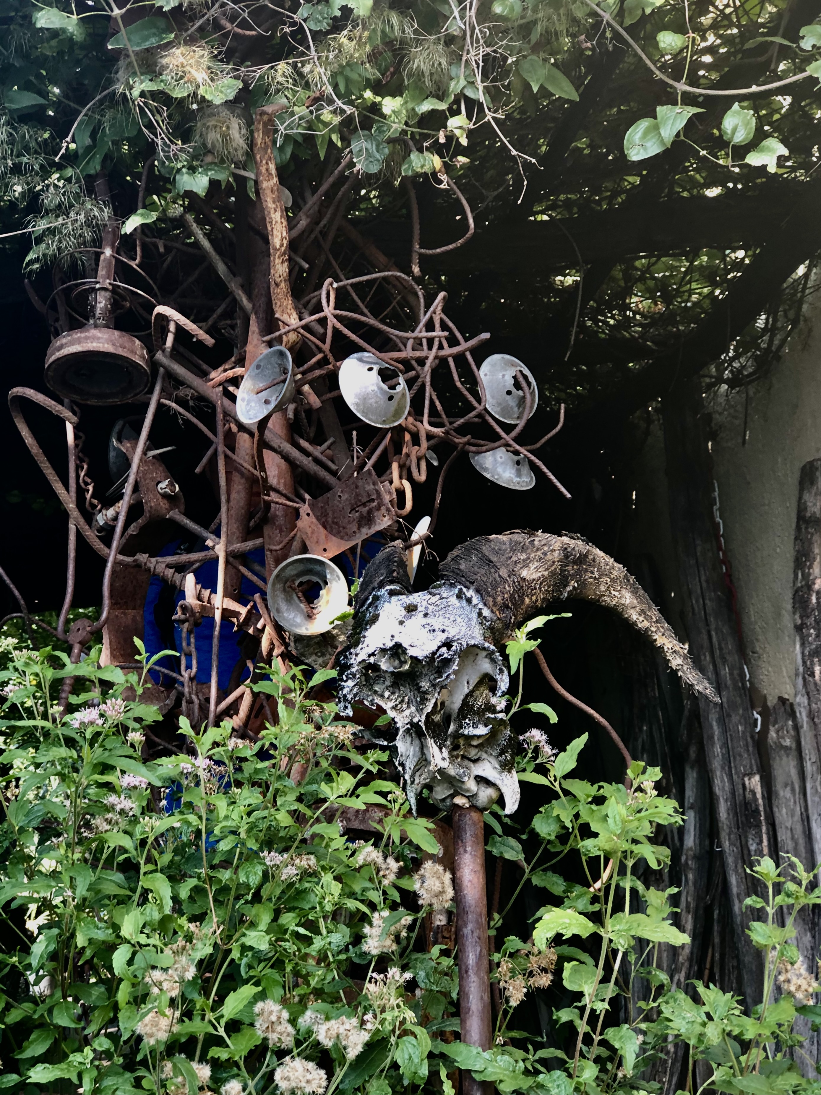 This section of the garden harbored sculptures of metal and wood. Ghostly, and leaning towards Halloweenish spooky, yet we maintained enough curiosity to explore more. Ah ha! I found a reference to this portion of the garden, known as The Forbidden Garden and the Fable of Belinda as well as an explanation of the various sculptures.