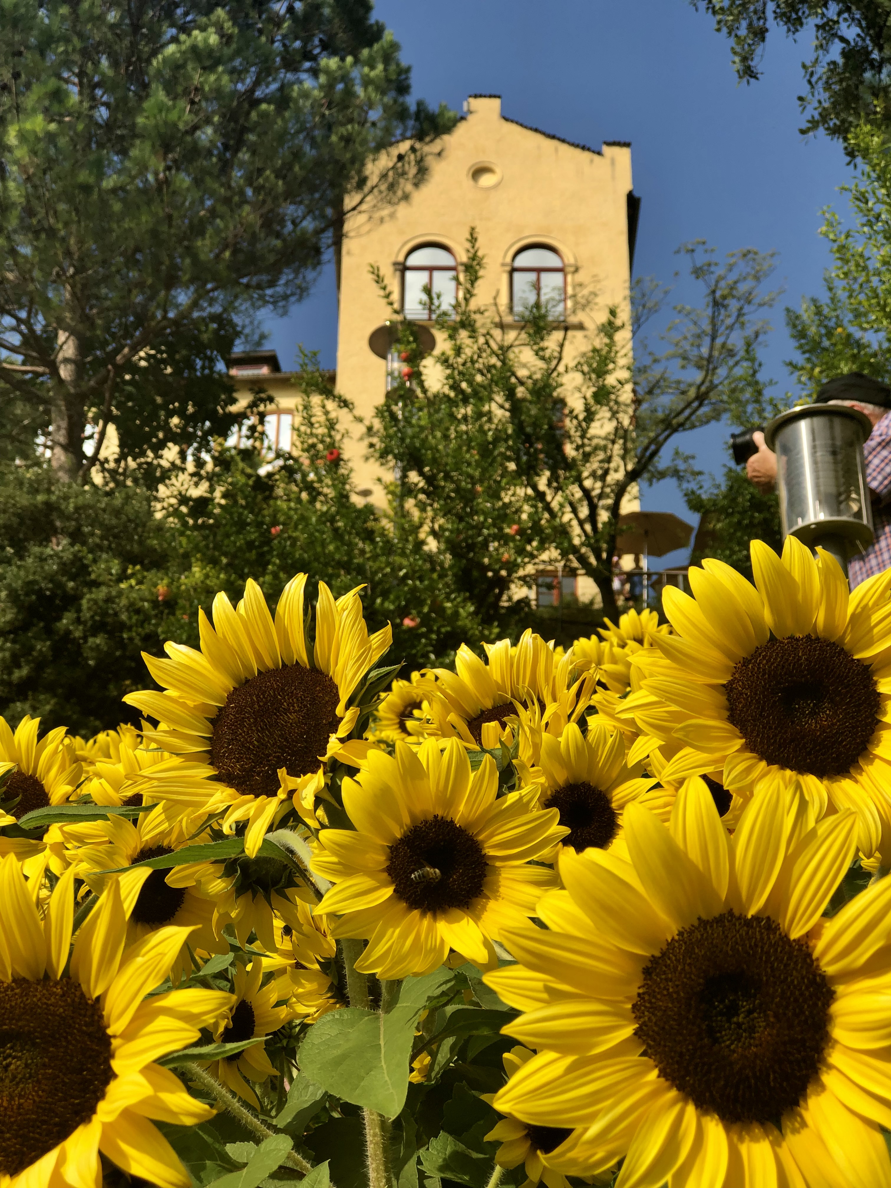 A sunflower lover’s dream walk. This walkway carried us all along an extensive bed of nature-perfect sunflowers with not one backing down on showing off its sunny smile. The bottom photo on the right does reveal one flower that excels above all the others! It makes me smile every time as I am reminded of its ‘bravery’ to speak up and step out of line with the others, just as sometimes we need to do in our lives.