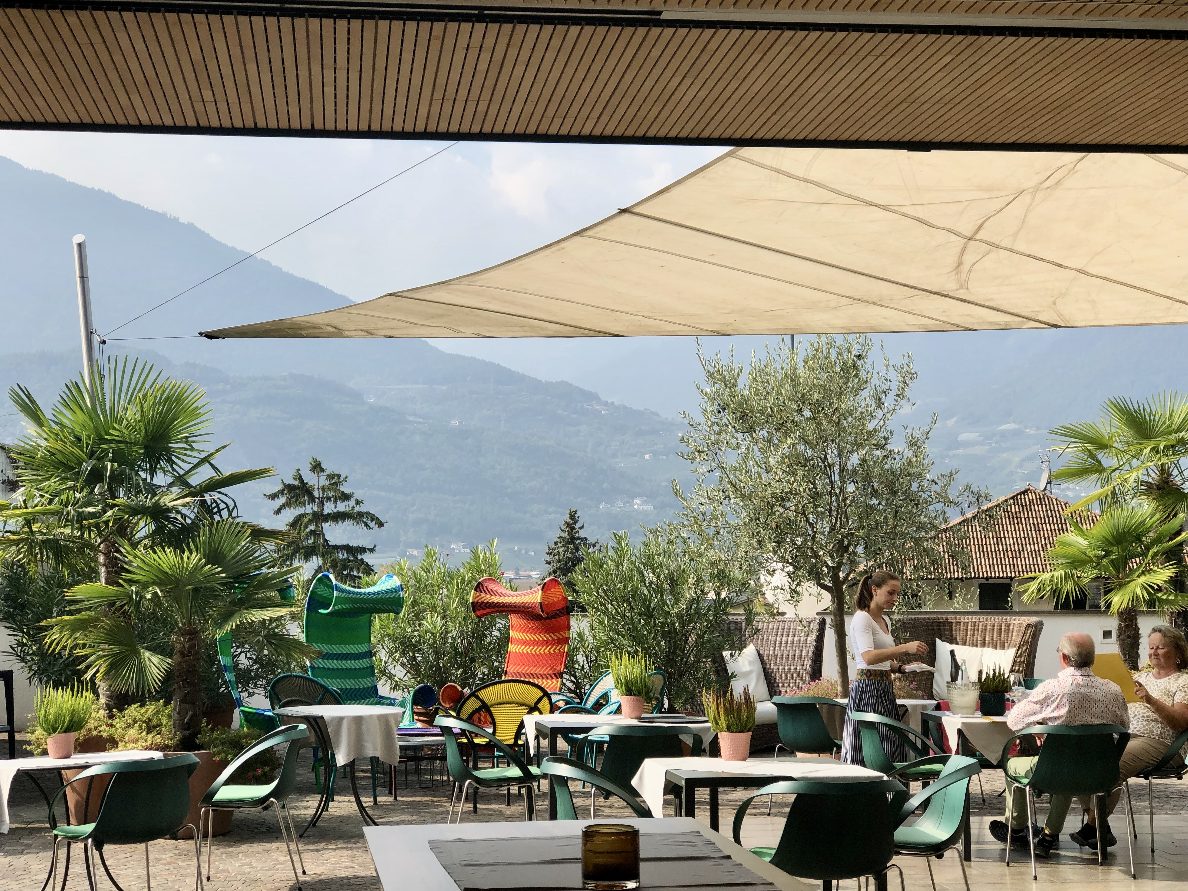 We had quite a spread to choose from at breakfast and, in addition, could request some ‘hot out of the kitchen’ morning specialties. Having just been in the Dolomite region more to the east (Cortina d’Ampezzo), there was definitely a difference noted in the language being spoken around us. Not Italian but rather German seemed to be the language of the morning. Were we really in Italy? More on this in my post on the town of Merano (Meran: German)