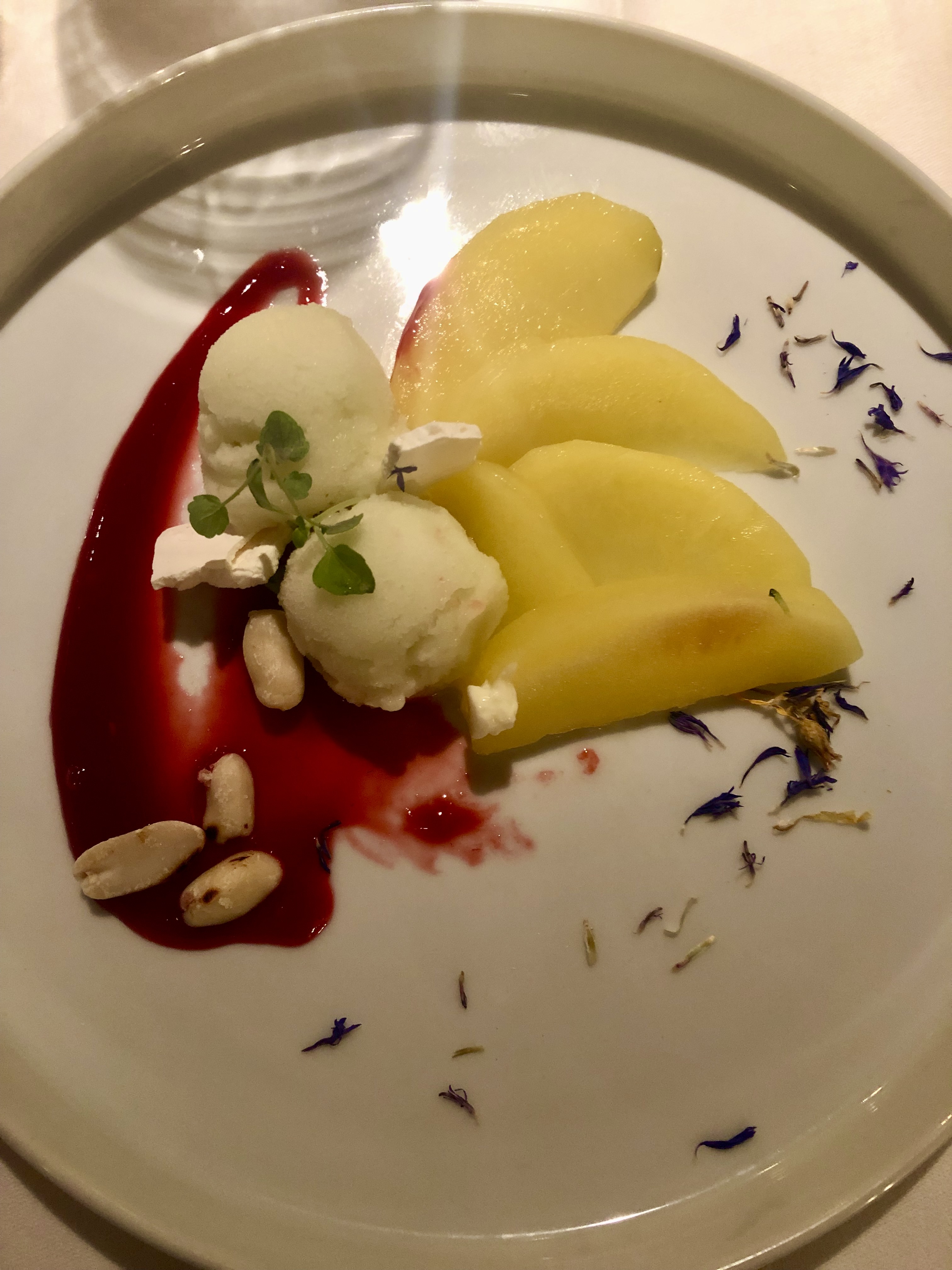 And, after a satisfying day of exploring; enough time for a rest, a freshen up and change; we took a quick elevator ride down for dinner. Take a look at some of our different courses.