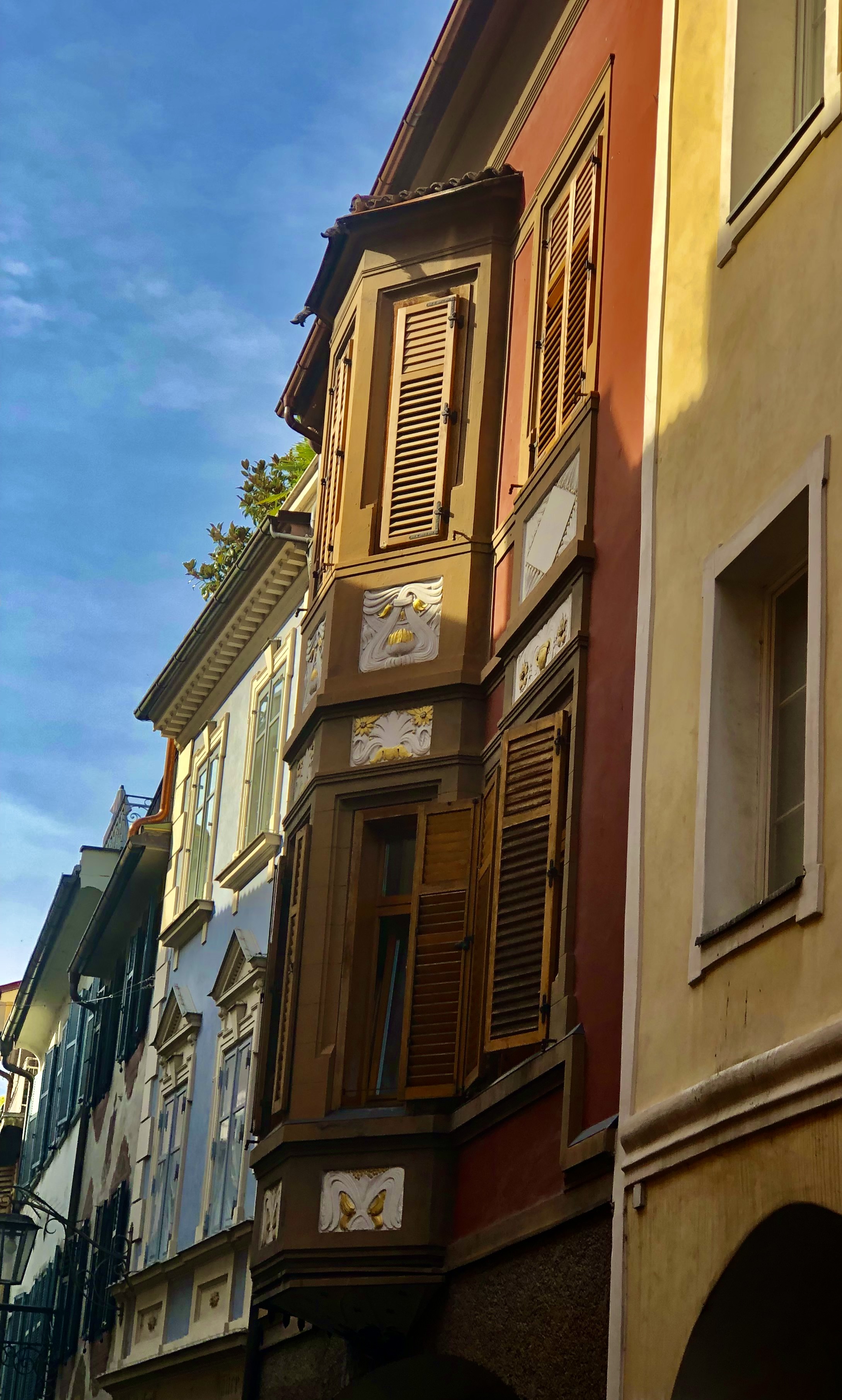 Merano (Italian) or Meran (German) greeted us with the river, Passer, which is a tributary of the Adige River. Add in the mountain views and some music and there was not much more I could ask for while exploring the 40,000 population town, which is at about a 1000 foot elevation. As you can see from a few of my photos, the facades showed some distinctive character.