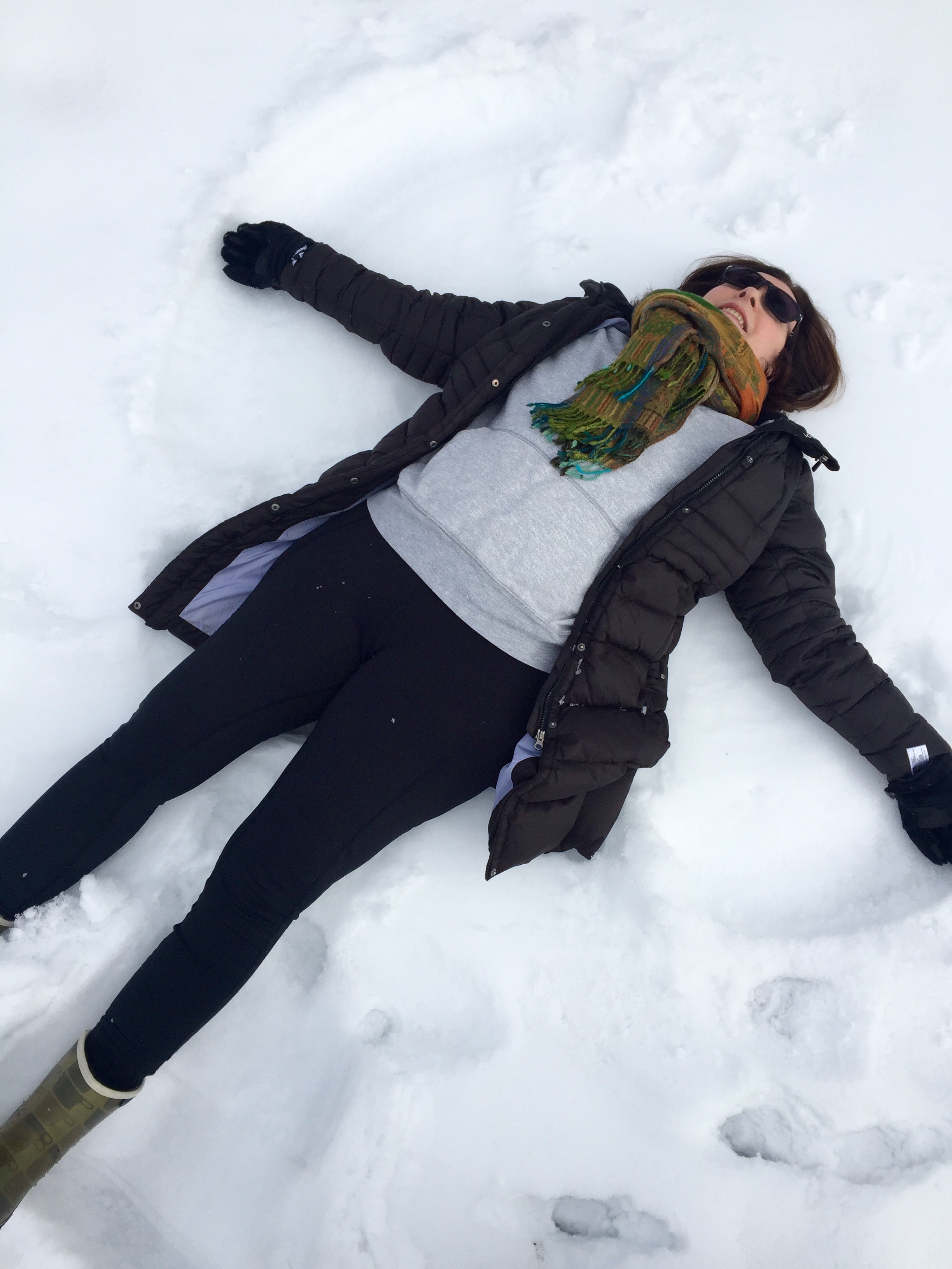 The ‘Noel’ photo above was taken of a delightful Paris children’s shop window I came across walking down the blvd. Saint Germain a few years ago. Then the following photo gallery of Bon Marche’s holiday windows shows the children enjoying one of the pleasures of the season. The decked out young un in the children’s department is in serious shopper mode, isn’t she? And the photos below, of me making snow angels, prove I’m ‘never too grown up to search the skies on Christmas eve.’ How about you? ‘Santa Claus is coming to town’…