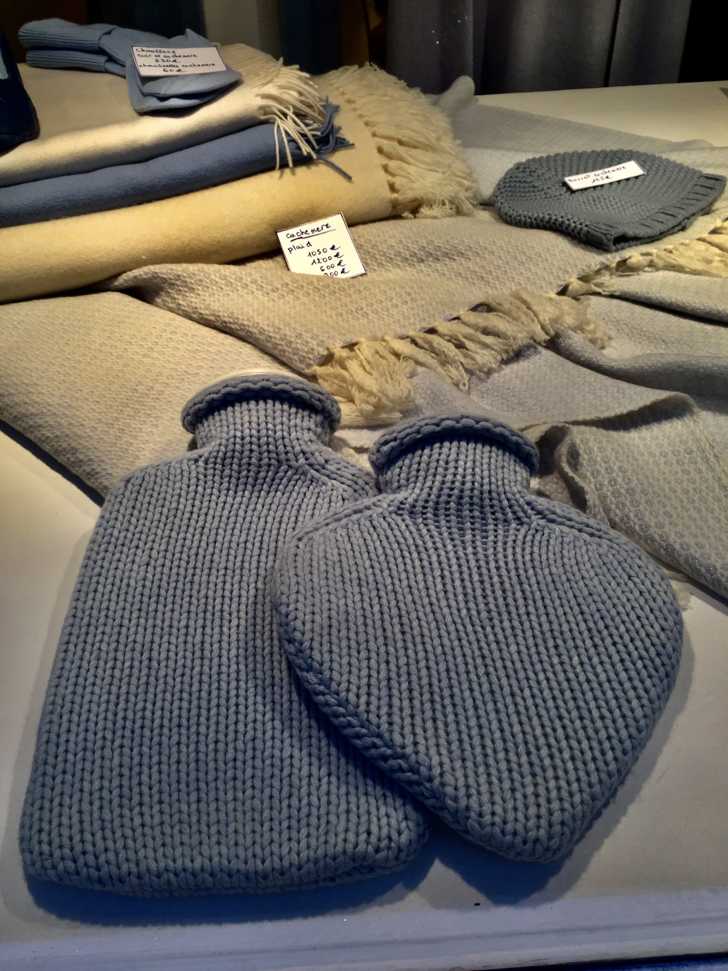 Find at-home evening apparel including a heart-shaped water bottle to warm you up on a chilly evening…at La Paresse en Douce (rue du Bac/7th arr.). By the way, the shop’s name means ‘lovely laziness’ or ‘laziness quietly’)