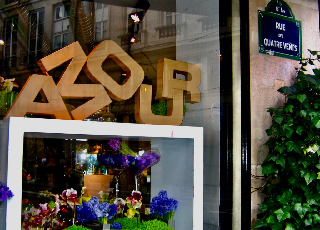 In my earlier days of visiting Paris, this was one of my first window shop stops after arriving in Paris: Christian Tortu’s shop on the Carrefour de l’Odeon (6th arr.). At that same time, I started a ritual of setting my bags down in my chosen ‘home’ ‘of the moment’ in the 6th arrondissement, and then headed out to grab the best people-watching seat I could find ‘of the moment’ at Cafe Deux Magots.