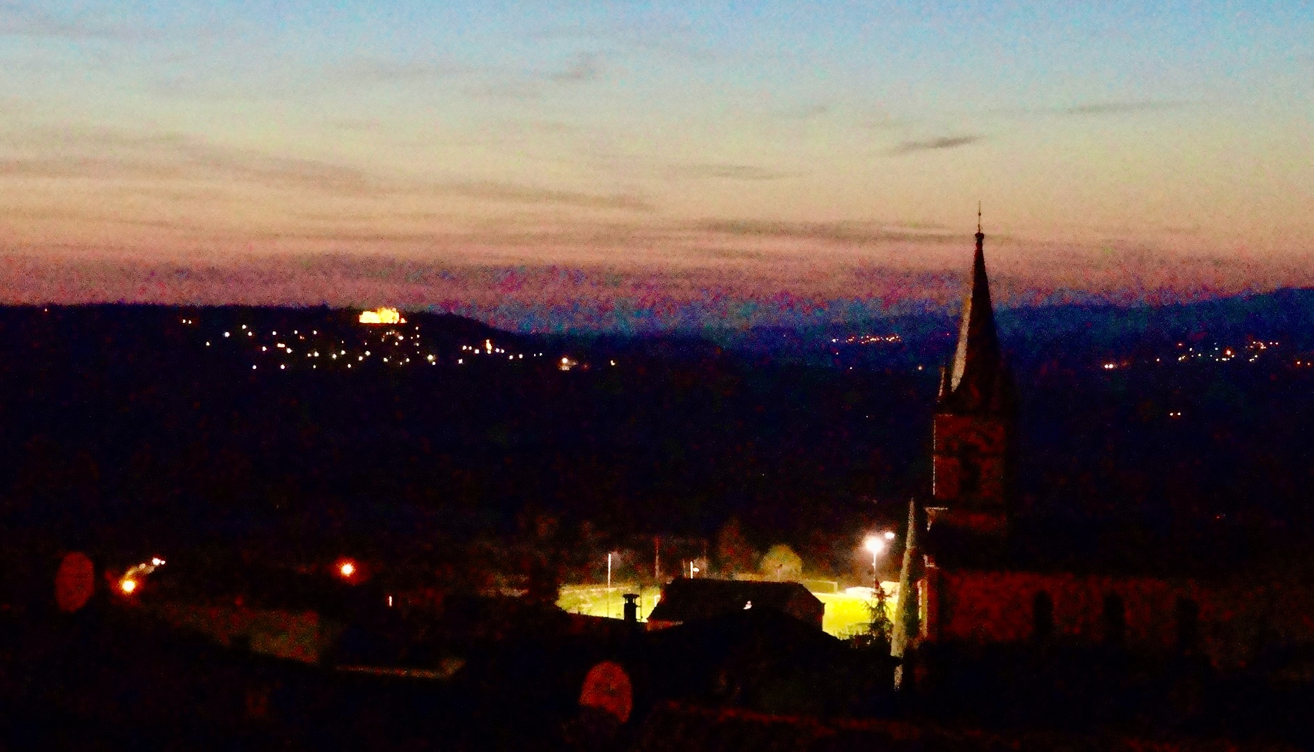 The evening light is special too. Off in the distance is the nightly showing of the Marquis de Sade’s chateau in Lacoste. I could see this view from my apartment window in Bonnieux.